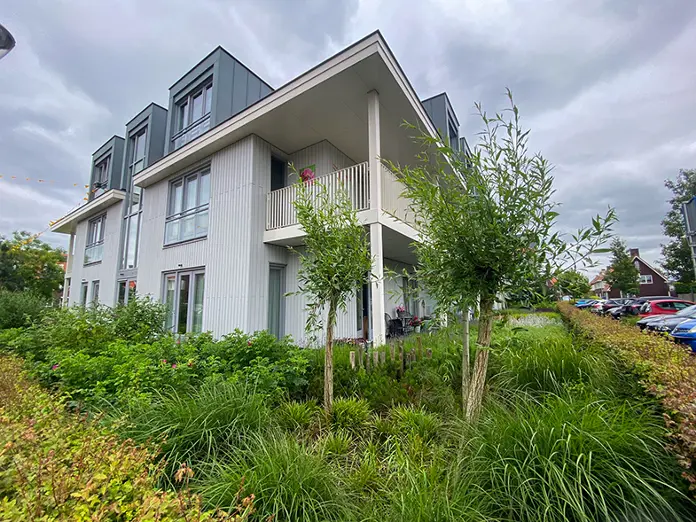 Eddy: “We denken niet in doelgroepen. We wilden een gemeenschap beginnen die even divers is als het dorp. Op die manier kunnen bewoners iets voor elkaar betekenen. Mensen hebben aandacht voor elkaar en hebben daardoor minder zorg nodig. Je ziet hier ook jongere mensen lopen. Dat zorgt voor een heel andere dynamiek dan als je alleen maar ouderen zou hebben.”